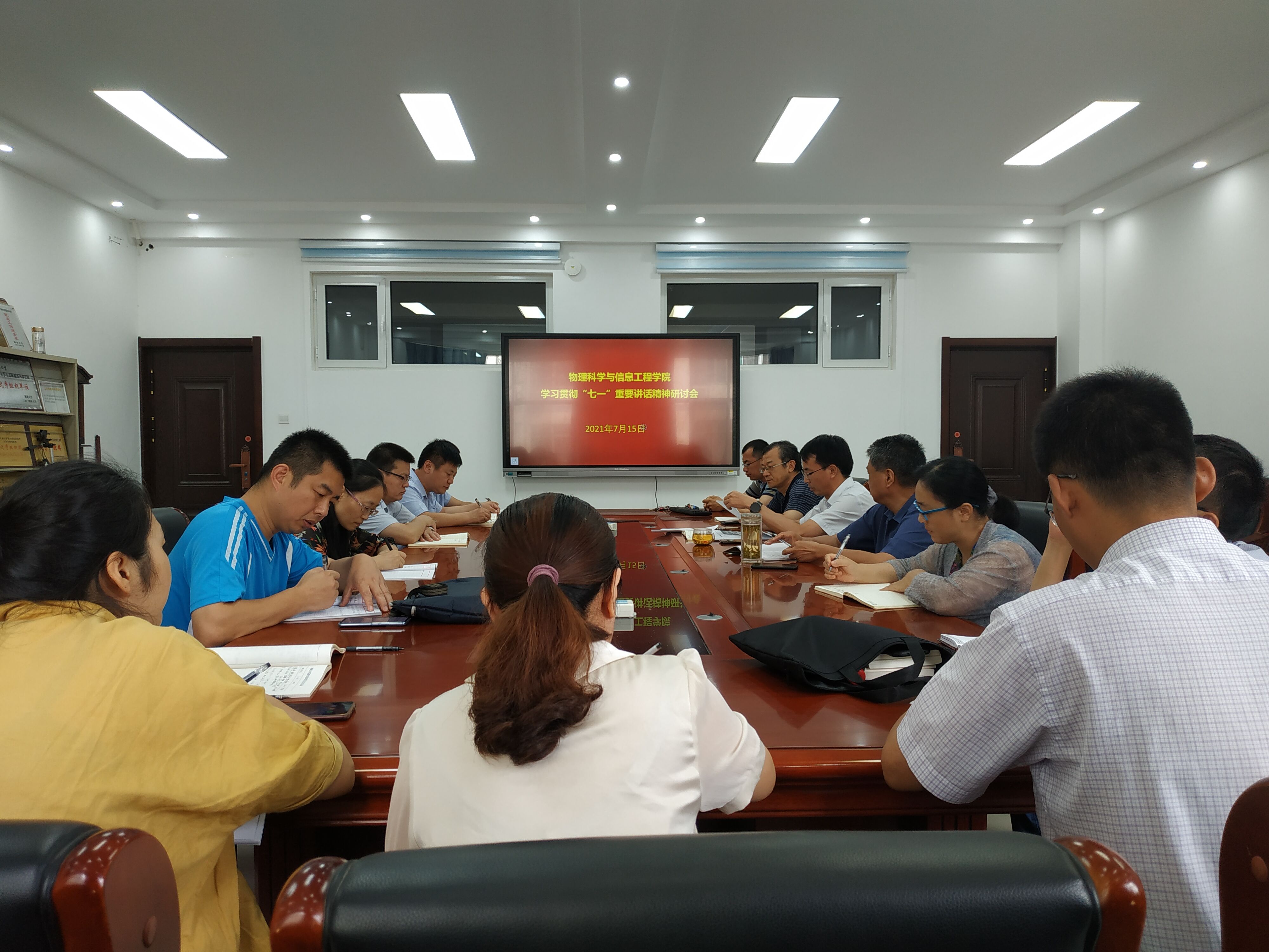 7月15日下午,伟德国际1946源于英国党总支在10C210举行学习贯彻习近平总书记“七一”重要讲话精神专题研讨会。学院党总支成员、组织员、各党支部委员和全体辅导员参加研讨会,党总支书记邵鑫主持研讨会。
