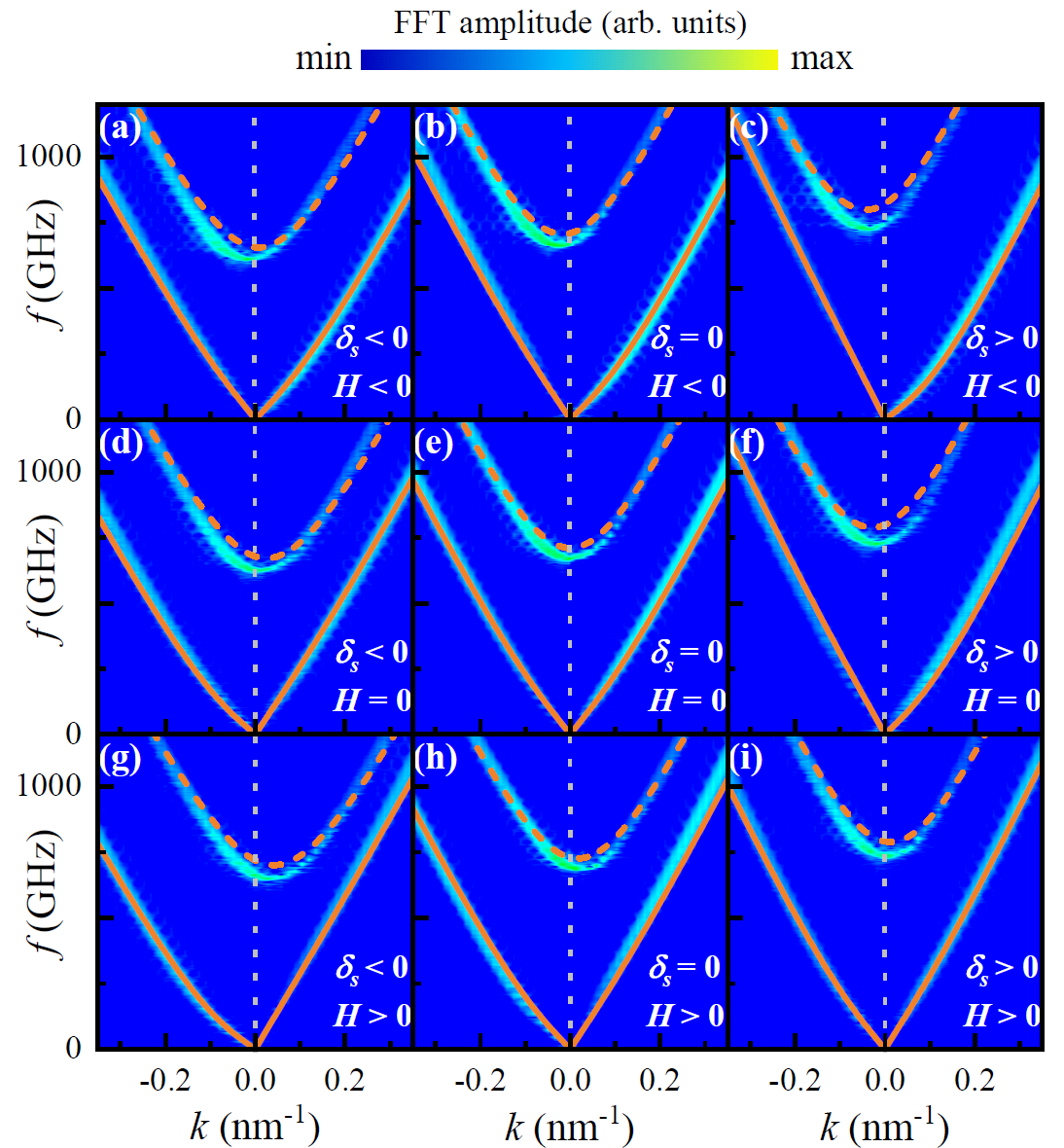 本研究针对亚铁磁体系,通过理论计算结合微磁学模拟揭示了外加磁场调控自旋波在畴壁中的非互易传播行为(图1)。研究计算了自旋波束缚态的色散关系,理论表明了自旋波的非互易性由DM相互作用、净自旋角动量δs和磁场H共同决定。具体而言,净角动量δs和磁场H的符号相反时,自旋波非互易性增强(图2)。另外,在亚铁磁畴壁中可以激发一个无能隙的声学自旋波模式和一个有能隙的光学自旋波模式,该能隙可以由DM相互作用、层间耦合系数以及净角动量δs进一步调节。这些结果表明,外加磁场可以作为一种灵活而有效的手段来调节亚铁磁畴壁中自旋波传播的非互易特性,为实现基于自旋波的可编程信息处理器件奠定了理论基础。