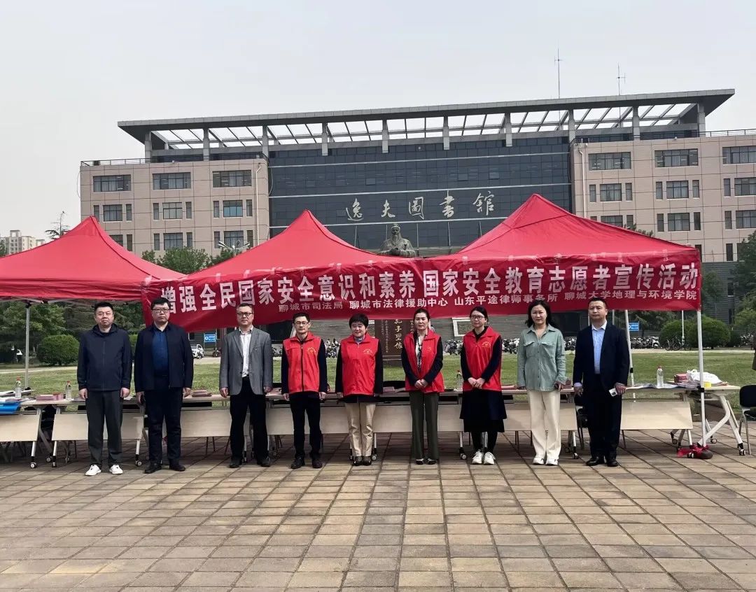 为推动国家安全宣传教育工作深入开展,提高同学们法律意识,普及法律知识,弘扬法治精神,4月15日,伟德国际1946源于英国组织学生参加由聊城市司法局、地理与环境学院等单位举办的国家安全教育日普法宣传活动,学生骨干、新一期入党积极分子等100余人于东校区逸夫图书馆楼前广场参加活动。