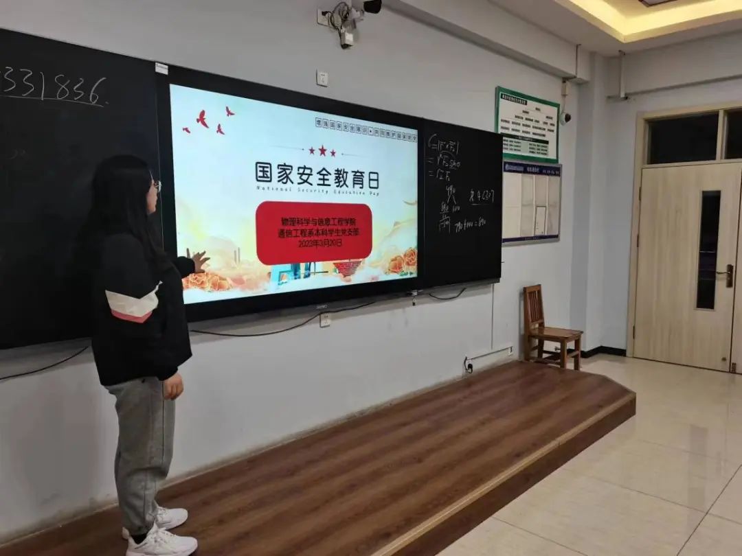 为教育引导学生树立正确的国家安全观,增强安全意识和安全素养,营造良好的维护国家安全的氛围。4月13日,伟德国际1946源于英国组织开展“增强国家安全意识,共同维护国家安全”主题班会活动,19、20、21级由班级学生干部组织班会,进行国家安全相关知识的学习,22级由通信工程系本科学生党支部赵晓彤作为主讲人,在各班进行宣讲。