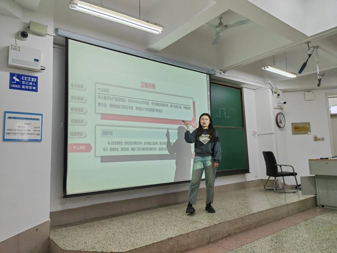 简历作为一种自我介绍的规范化表达,是求职者给HR的第一印象,也是求职的“敲门砖”。潘文莉在本次活动中分享了有关简历撰写的规范与技巧,并指导同学们打造属于自己的“求职名片”。她从简历的结构、主要内容、注意事项以及投递方法四个方面为同学们进行了介绍,重点讲解了照片、基本信息、教育经历、实践经历、技能证书、奖励荣誉、个人评价等简历组成部分的填写注意事项。同时,她强调一份合格的简历要做到要素齐全、简洁明了、重点突出,并通过实际例子进行示范讲解,指出了简历制作中常见的误区,帮助学生深入了解简历的重要性,督促同学们认真对待个人简历制作,为求职之路做好准备。