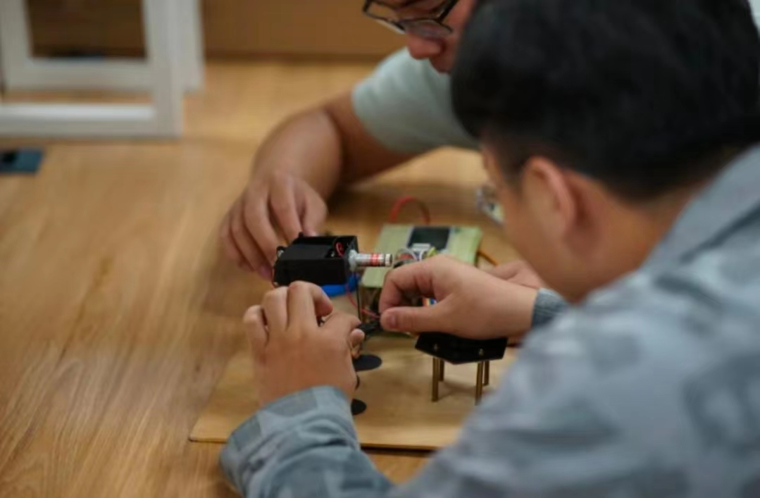本次实践的地点是家乡的平房住宅,团队成员通过观察壁虎爬墙,以此来获得爬壁机器人的结构设计灵感,模仿壁虎爬墙的仿生学设计方式。郝雪娜及其团队认为应从两个方面进行创新和学习,一是使该爬壁装置更加智能化,让它不再是一个简单的装置,而是向机器人的方向改进。通过寻找网上的资料和看一些专业比赛等方式,对该项目的传感技术进行改进,让它能够连接WI-FI或者是插入流量卡来实现人们对该机器人进行远程操作,这样也更适用于不在家外出工作的人们,也方便工业中利用一台电脑可以远程控制多台爬壁机器人,提高工作效率。二是学习一些视觉传感技术,深入探究相关的专业知识,使用仿真软件来测试该机器人的物理性能,这使得团队的研究过程更加形象。