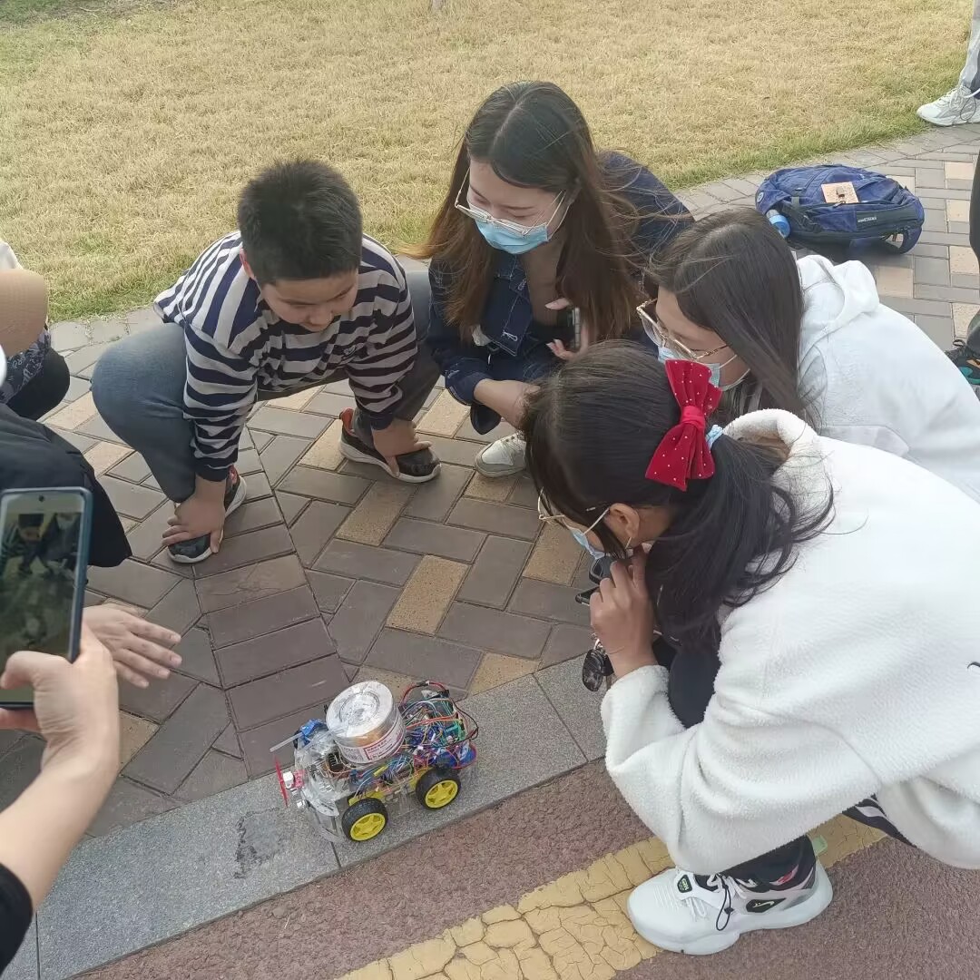 第三阶段,实践团队被分为三组多线程进行实践活动。第一组向有消极态度的家长进行科技创新作品的讲解,让他们意识到培养青少年科技创新意识的重要性;第二组把有积极态度的家长集合起来并建立家长群,讨论当下培养青少年科技创新意识的方法,并引导家长鼓励青少年参加有关科技创新的活动和比赛,激发青少年好奇心和探究欲望;第三组对现场青少年进行简单的操作引导,讲解相关模型的原理和功能,通过亲身体验激发青少年对科技创新的兴趣,培养动手实践能力和创新性思维,激发青少年对科技创新的兴趣,并下发调查问卷,进行讨论总结并展示实践成果。