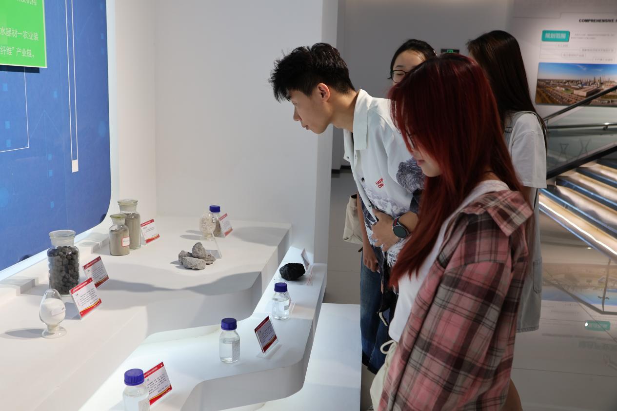 在石河子经济技术开发区展览馆,谢彤详细讲解了开发区的地理位置、区位优势、产业集群和产业链布局。在参观过程中,实践队员们沿着开发区发展脉络,逐一参观展馆内的展示内容,通过文字纪实、图片资料、视频播放,重温石河子经济技术开发区的历史进程和发展成就,全面了解石河子经济技术开发区的蓝图规划、产业成果和未来规划,在参观中追忆峥嵘岁月、凝聚前行力量。