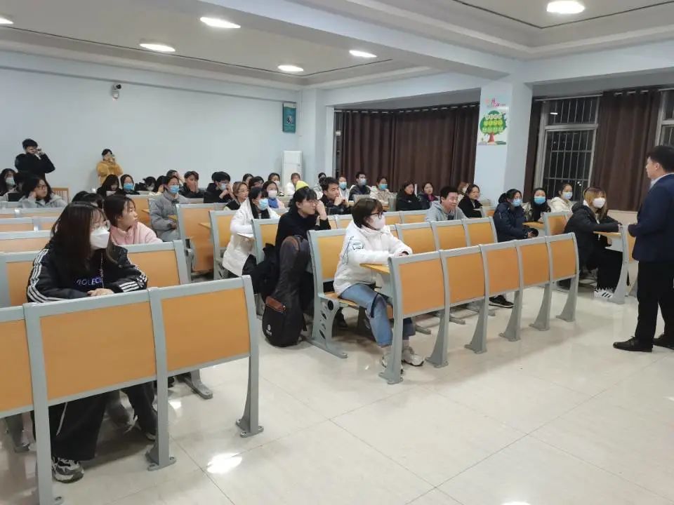 培训活动开始前,工作人员布置会场,采用签到制度,入口处安排同学引导前来参加活动的学生入座,为同学们解答相关问题。此次活动特邀请中公教育的老师为我们进行培训讲解。