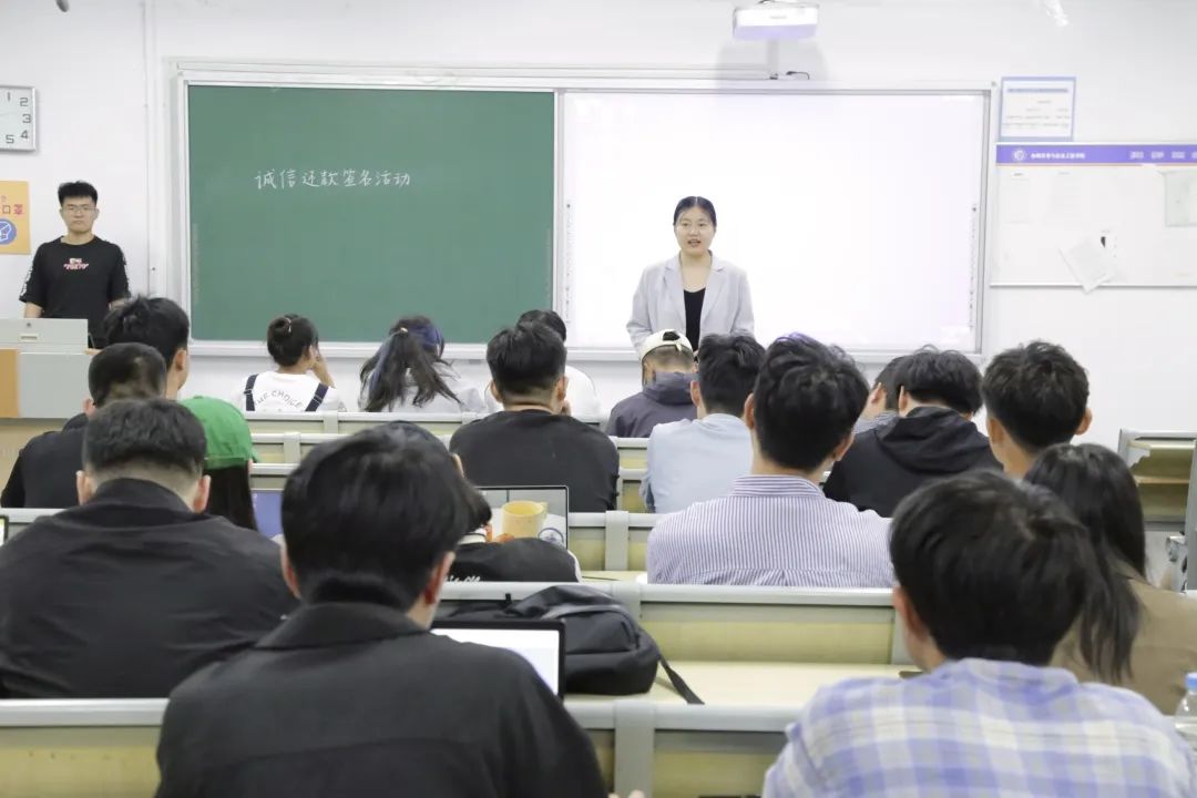 为了进一步做好2023届国家助学贷款工作,增强学院学生诚信还贷意识和责任感,培养毕业生们心怀感恩、知信守信的人格品质,5月13日,伟德国际1946源于英国于西校区十号楼C321组织贷款毕业生开展诚信还款签名仪式,本次活动由爱心助学部主办,2019级国家助学贷款学生及资助工作负责辅导员洪文静共同参加本次活动。