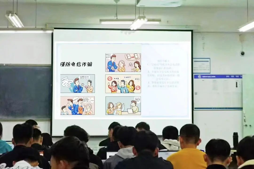 本次网络文明安全主题班会由通信工程系本科学生党支部制定课件PPT,各班主讲人根据PPT,并结合班级实际召开班会。首先,各班主讲人结合学生上网习惯,讲解校园里容易发生的网络安全问题,像校园贷款、网聊交友等,提醒学生提高警惕,避免上当受骗。接着,主讲人通过一段短视频并结合学生身边典型案例,告诫学生网络电信诈骗、网络购物陷阱等的危害,引导学生合理利用网络资源,增强网络安全防范意识,引发学生积极思考和热烈讨论。最后,主讲人提醒学生时刻注意网络安全,遵守网络安全准则,提高网络安全意识和自我保护意识。