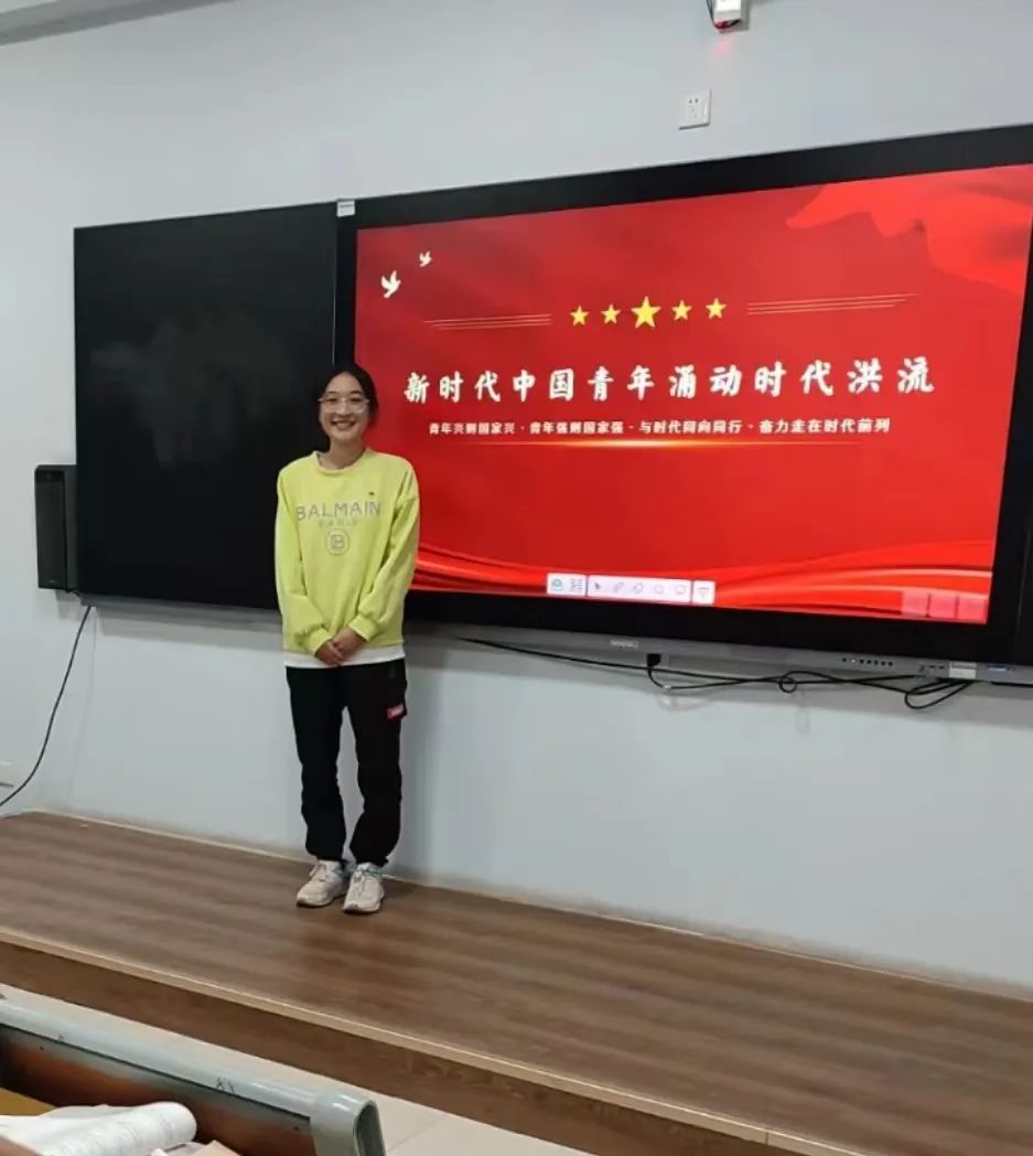 史艳牢记身为青年人的使命,积极配合班长和班委完成各项班级工作。以身作则,拥护党的领导,在思想和行动上严格要求自己。理想信念坚定,是一名有理想,敢担当的新时代好青年。