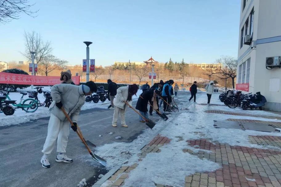 在活动开始前,志愿者们进行了周密而合理的分工,确保每个环节都能有序进行。活动开始后,志愿者们带着铁锹和扫帚来到分配好的场地,开始了紧张而有序的清扫工作。他们以饱满的热情和昂扬的精神风貌投入到清雪行动中,寒冷的天气和厚厚的积雪也无法阻挡他们的步伐。经过一个多小时的辛勤劳动,志愿者们成功地将学院门口和周边道路打扫得干干净净,同时将实验楼前道路也清扫出了一条可供师生行走的小路,这不仅消除了道路安全隐患,还为校园增添了一份整洁和美丽。