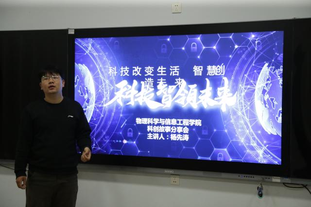 活动伊始,杨先涛首先介绍了如何在技术层面提高自己,着重向大家讲解了大学生科创竞赛计划的前期准备以及答辩流程,他提到可以通过个人比赛来发展每个人的特长,同时还通过一系列知识和经验的讲解帮助同学们充分了解到如何从一名竞赛小白到一名具有丰厚经验的竞赛人士。在活动过程中,同学们认真聆听、聚精会神,针对不懂的地方及时提出疑问,既提高了自身能力,也为未来科创竞赛打下基础。